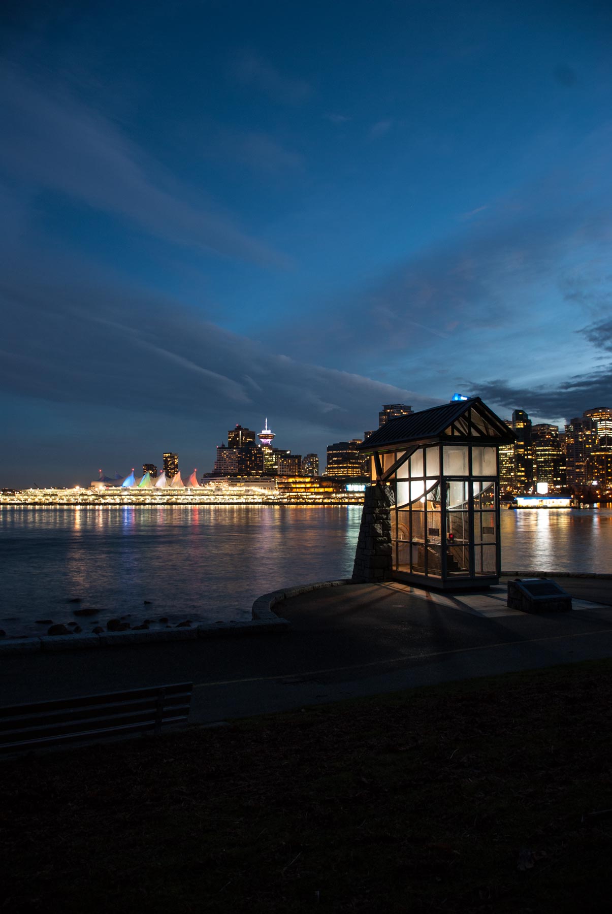 It’s been a while that I took picture while it is dark in the city, I started by still warm and good weather at the sea wall around the Stanley Park and moved forward to downtown. The tripod is like last time from my workplace, just for the weekend as well.