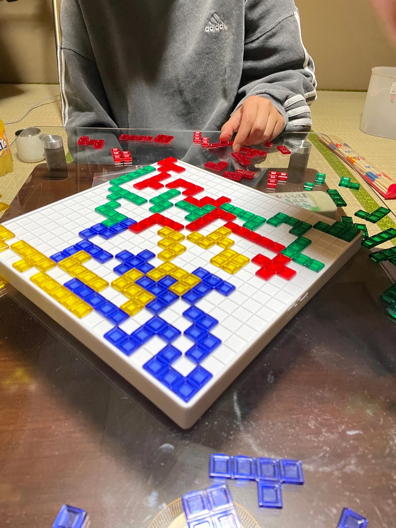 Es war ein lustiger Abend! Zusammen mit Freunden spielten wir einige Spiele auf der Switch wie Mario Kart und Mario Smash, holten uns Pizza und legten Blokus-Steine aneinander, unser aktuelles lieblings Brettspiel.