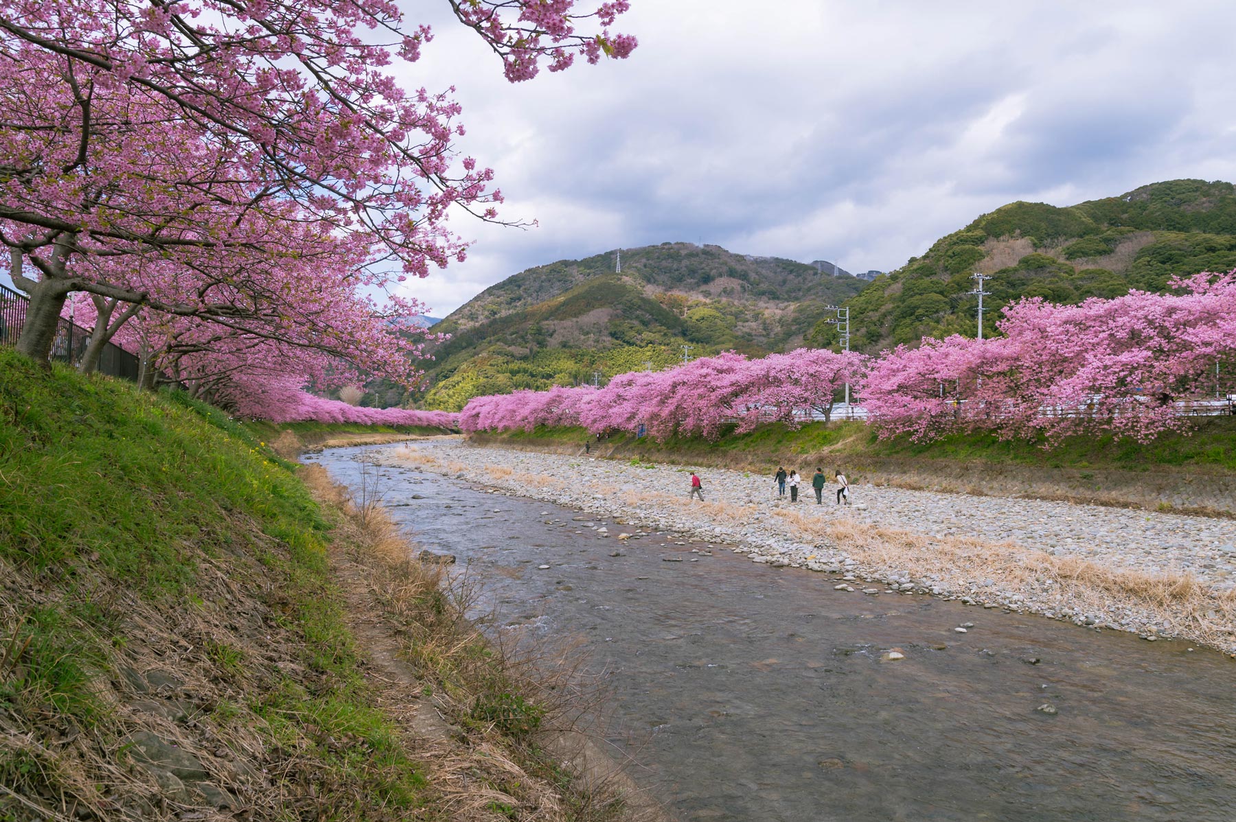 Weitere 40 Minuten nach Osten, Kawazu, bekannt fuer seine fruehen bluehenden Kirschblueten hatten wir einen wunderschoenen Spaziergang entlang des Kawazu-Fluss.