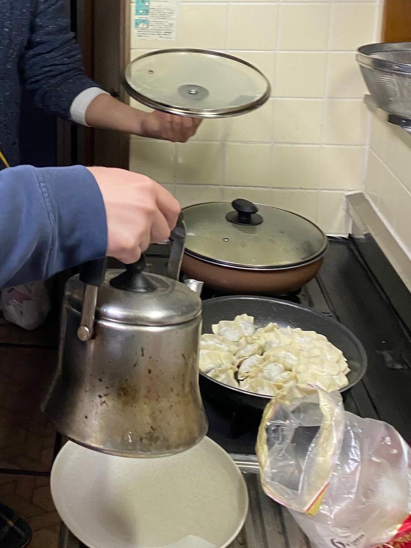 Selbstgemachte Dumplings! Mit Bier und Reis haben wir Gyoza zu Abend gegessen, wir hatten insgesamt vier Teller voll bekommen und haben beim Essen eine kleine Strichliste gefuehrt um mal zusehen wie viele man eigtl isst. Von 20 bis 30 Dumplings hat jeder von uns gegessen, ohne Reis waeren es vermutlich noch mehr gewesen. Im Restaurant oder Supermarkt bekommt in der Regel 6-8 Stueck und wir hatten heute abend 4 bis 5 mal so viele.