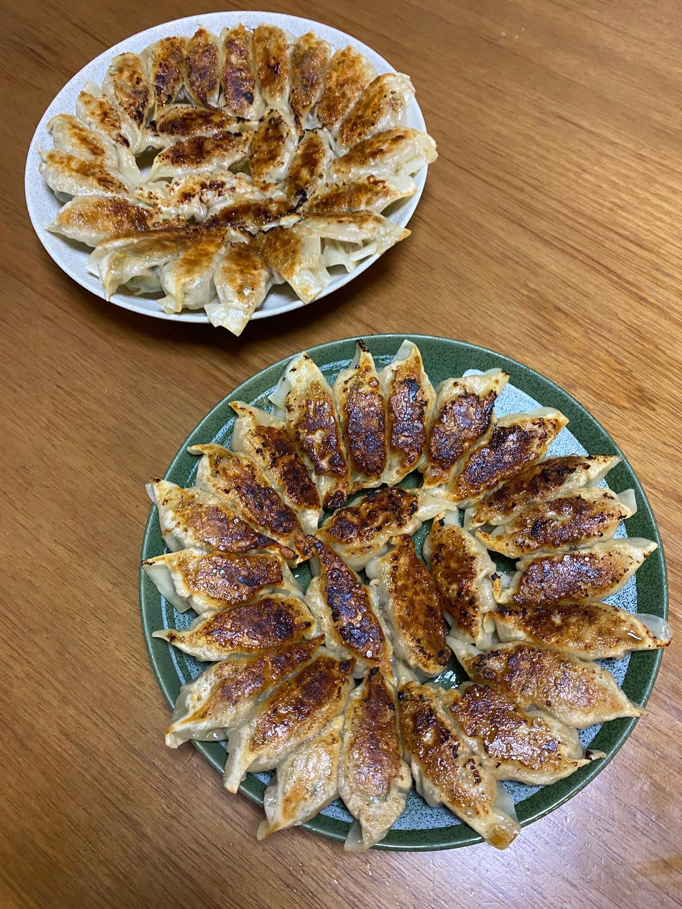 Homemade dumplings! With beer and rice we ate gyoza for dinner, we had a total of four plates and decides to write down how many we actually gonna eat. From 20 to 30 dumplings each of us has eaten, without rice it would probably have been even more. In the restaurant or supermarket you usually get 6 to 8 pieces and we had tonight 4 to 5 times as many.