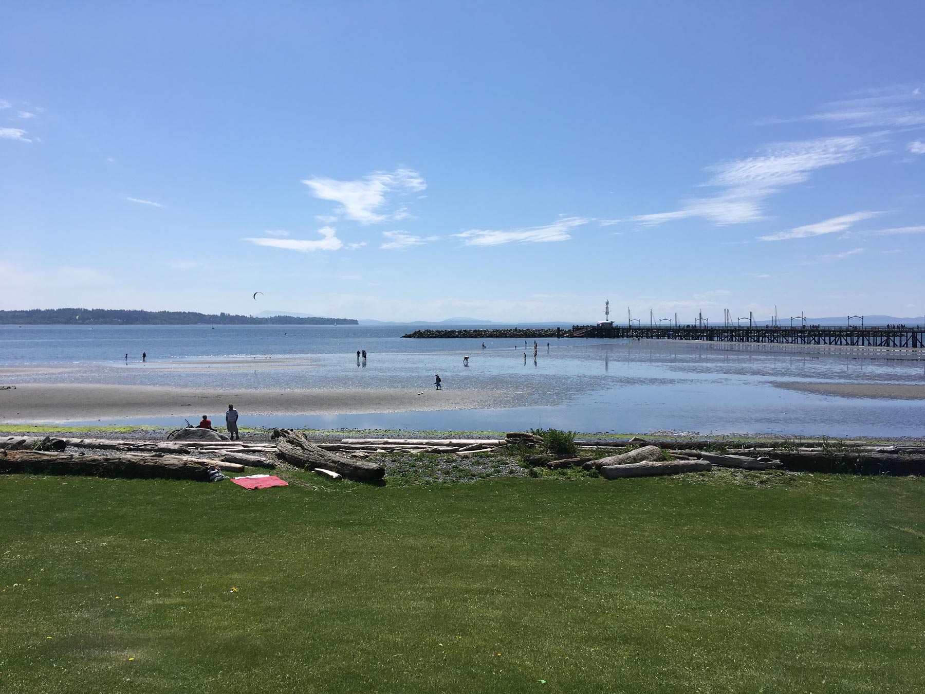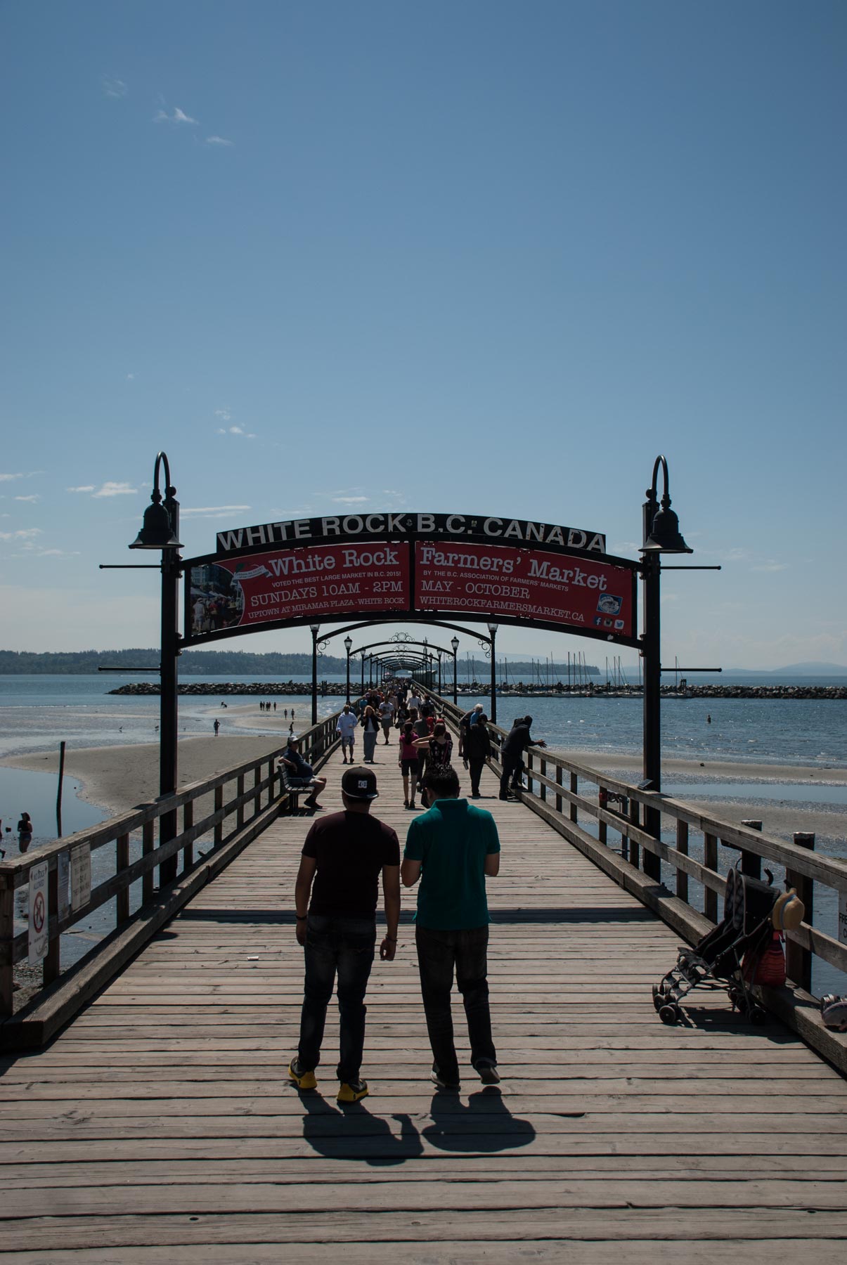Bei strahlendem Sonnenschein ging es mit dem Bus knapp 1 1/2 Stunden nach White Rock an den Strand. Das kleine Örtchen liegt direkt an der kanadische-amerikanischen Grenze, nicht mal 5 km weiter wäre man an der Grenze. Der Ort allein hat nicht all zu viel zu bieten. Hauptattraktion ist der lange Steg ins Wasser hinein und natürlich der Strand, welcher mich stark an die Nordsee erinnert hat. Der Ozean selbst ist kalt und ungemütlich, war aber bei der Hitze eine gute Abkühlung.