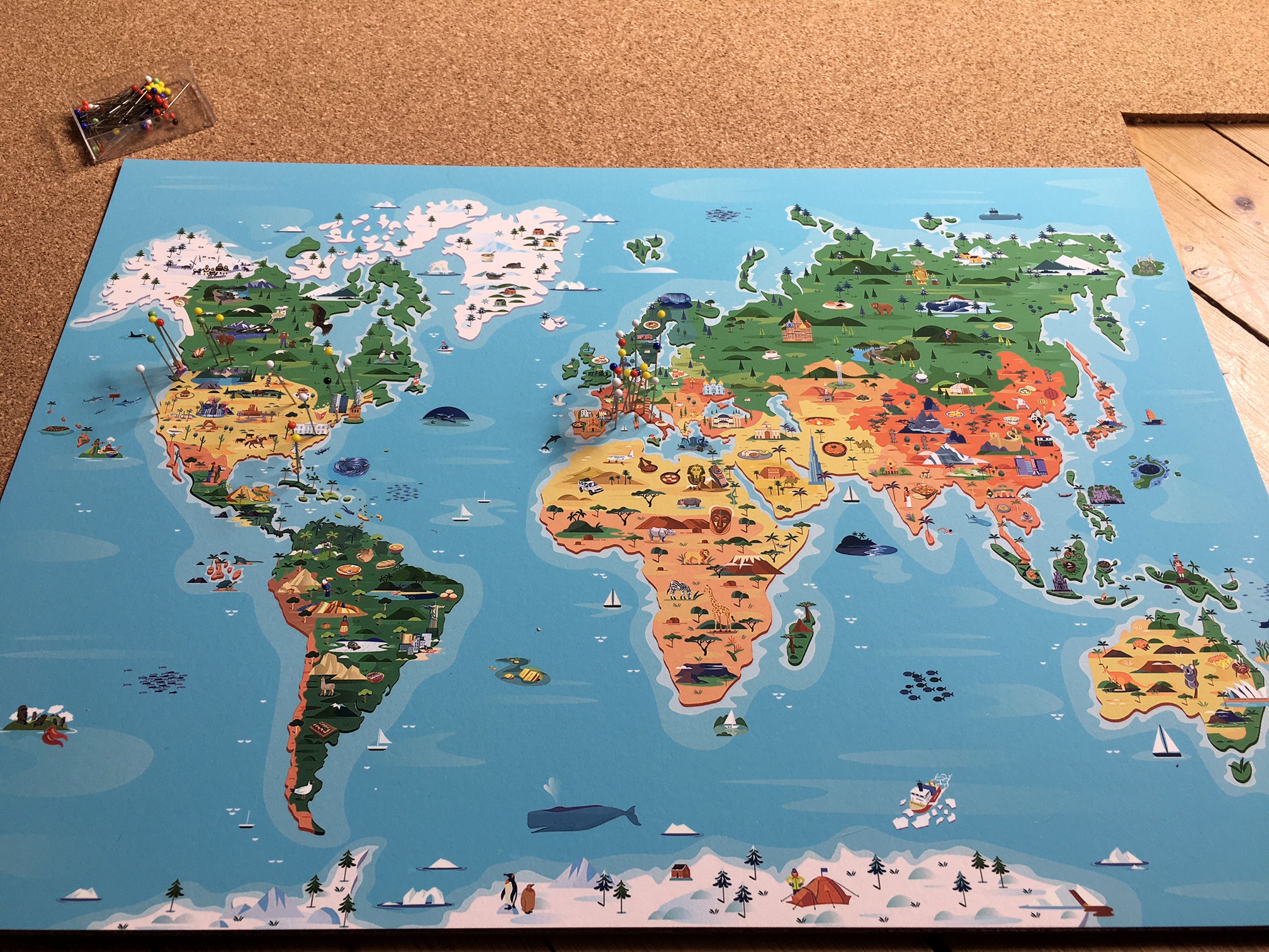 Finally I made my own world map pinnwall. I wish I could put more pins already, but with a reason it didn't happen resp. we have to sit tight.