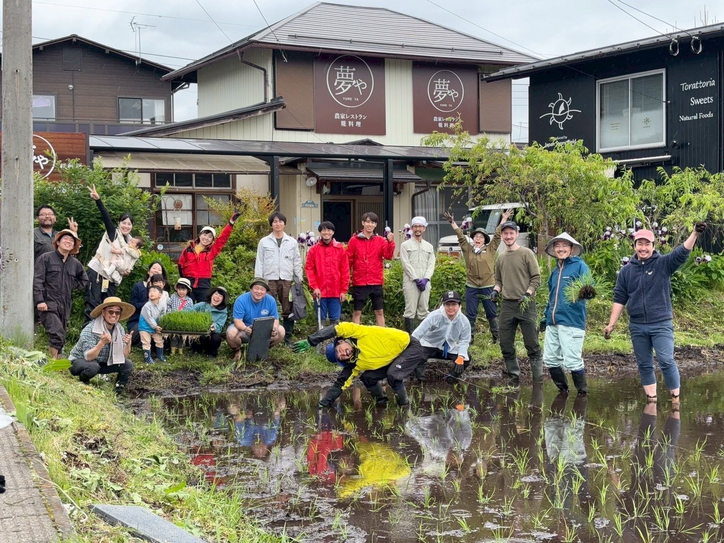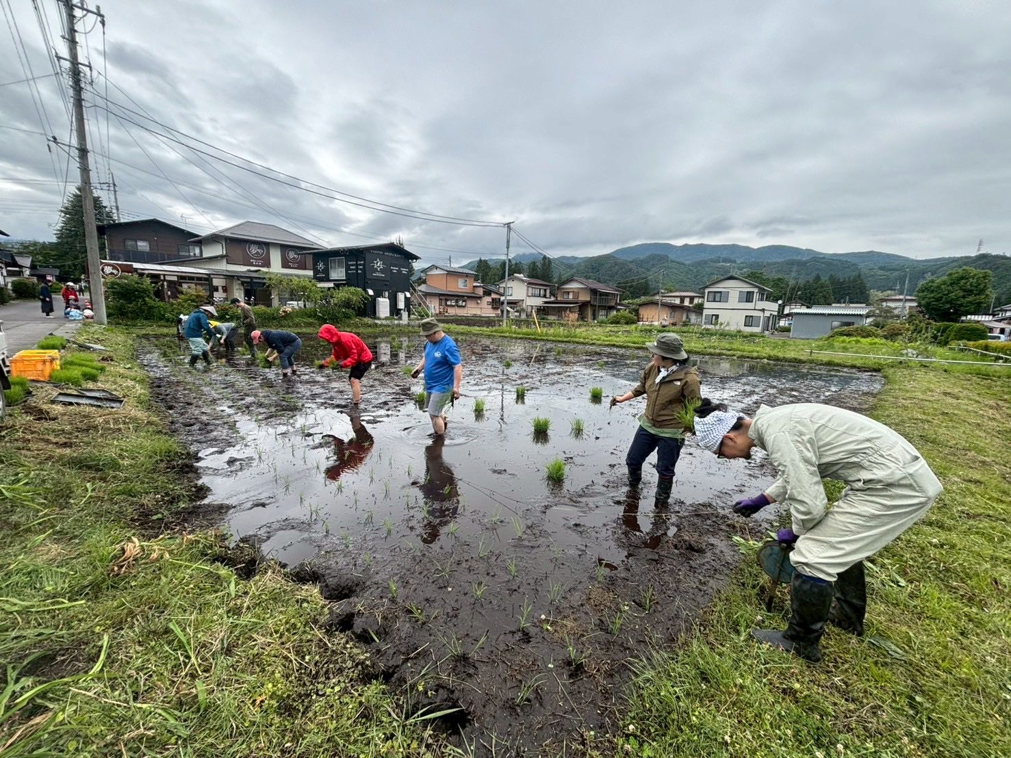 Today I had the chance to try it myself for the first time: standing ankle-deep in water and mud, I carefully planted small rice seedlings into the ground, spaced about 30 cm apart, row by row.