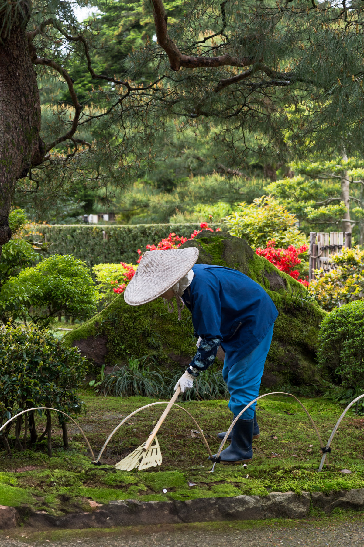 Deshalb war ich heute schon um halb acht im Kenrokuen-Garten, einem der drei berühmtesten Landschaftsgärten Japans. Einst war er die private Gartenanlage der herrschenden Maeda-Familie, heute ist er für einen kleinen Eintrittspreis öffentlich zugänglich. Neben der alten Familienvilla findet man auch ein Teehaus, das bis heute die Traditionen und Erinnerungen bewahrt.