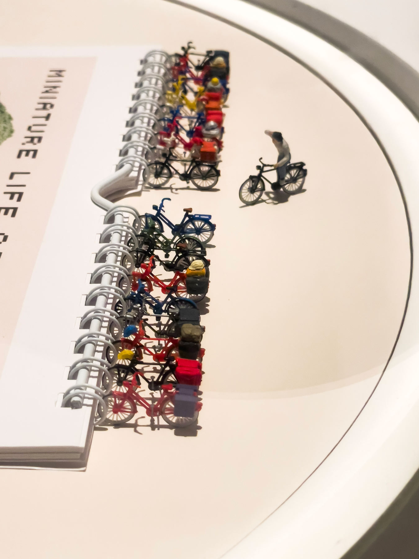 Out of the several exhibitions on display, I chose to check out the Miniature Calendar by Tatsuya Tanaka. He creates tiny dioramas using everyday objects — like turning a spiral notebook into a bicycle rack. It was playful and clever, and I liked to see it.