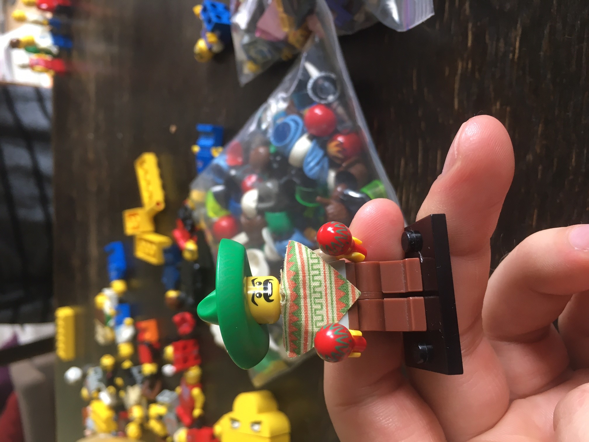 Meine Neffe hat mein Lego entdeckt und hat mich gleich gefragt, ob er damit spielen kann. Darauf habe ich ihm meine Figuren und ein Beutel Steine rausgeholt. Dabei habe ich selbst ein paar Maenchen mit zusammengebaut.