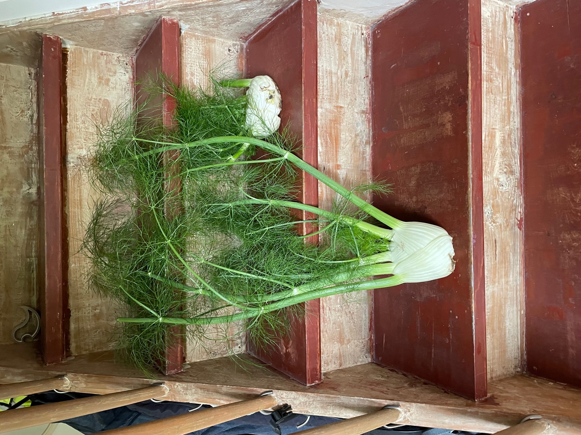 Aus unserem Garten selbst geerntetes Fenchel, jetzt ueberlegen wir nur noch welches wir Gericht damit machen ...