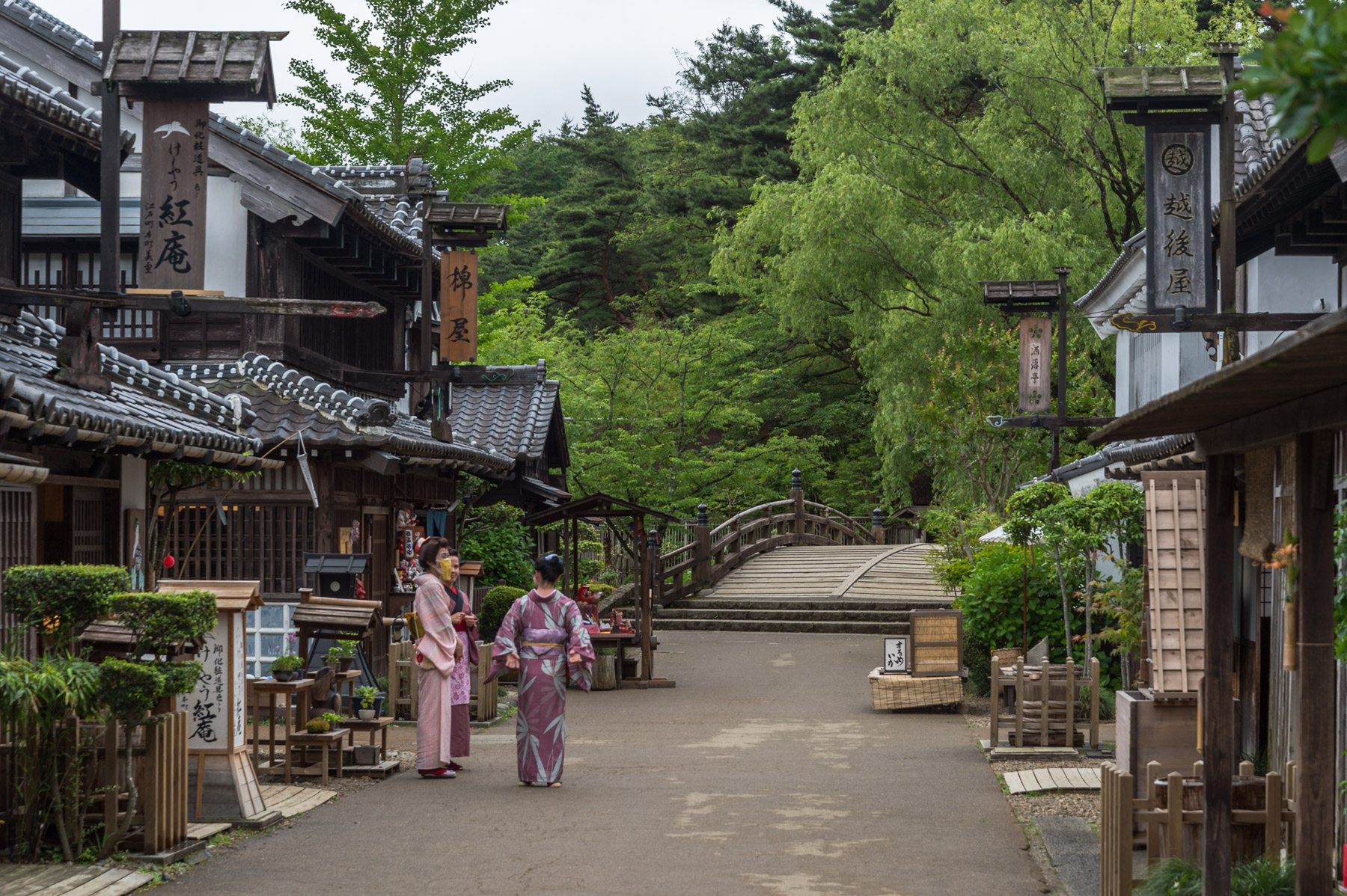 Die vor Ort nachgebauten Haeuser und Strasssem konnte ich teils selbst schon verteilt bei meinen Reisen rund um Yokohama und Japan sehen. Und einen Kimono durfte ich auch schon tragen.