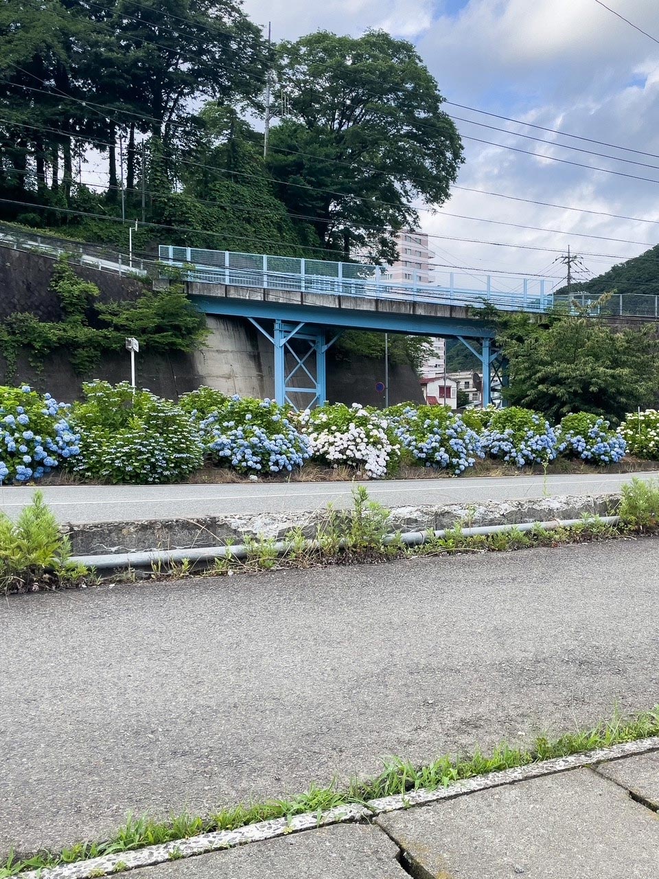 The blue hydrangeas match almost perfectly with the bridge above. Coincidence?