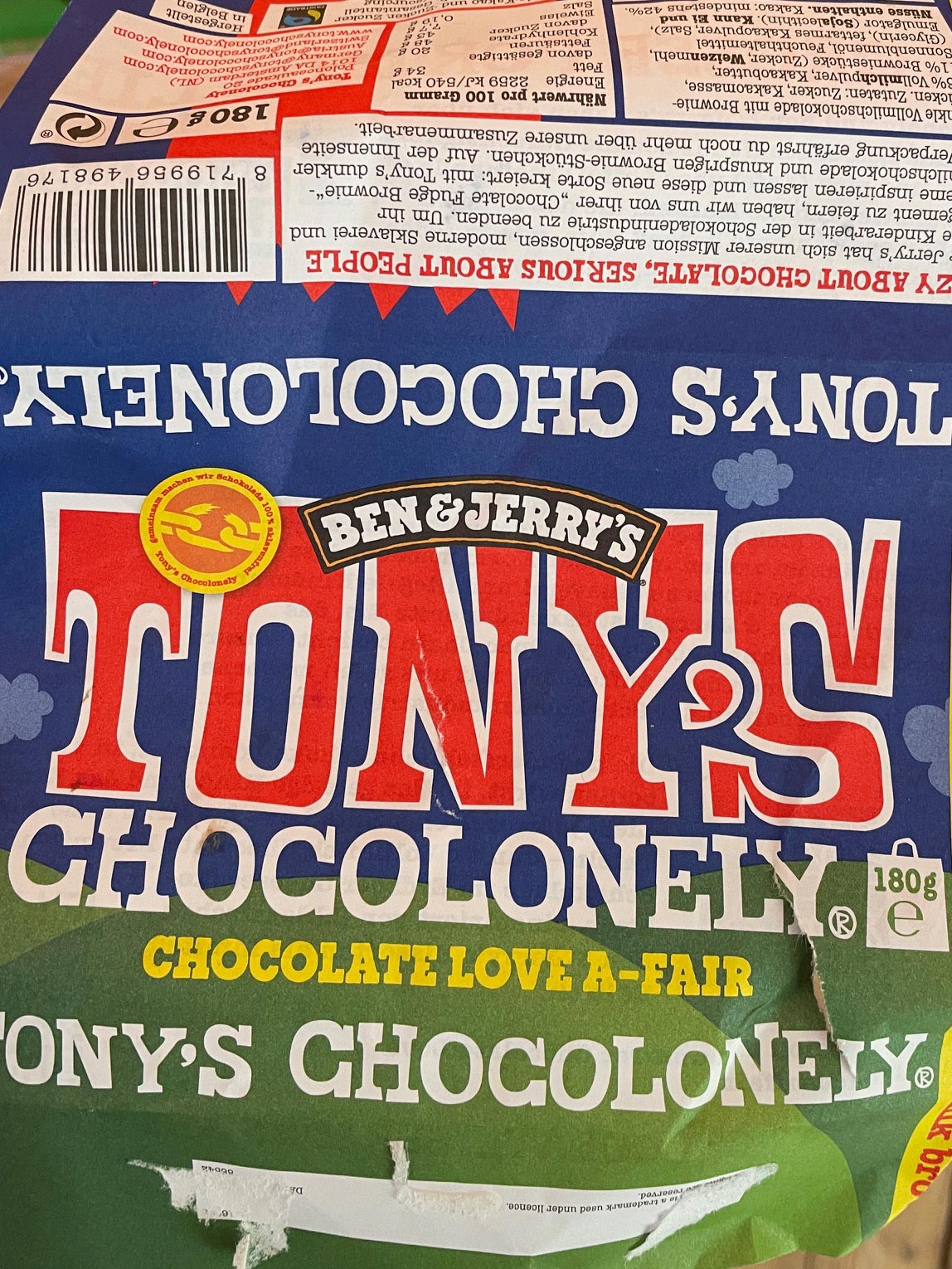 Da mir die Schockolade so gut geschmeckt hatte, habe ich eine Foto von der Verpackung gemacht, bevor ich die Sorte vergesse. :D