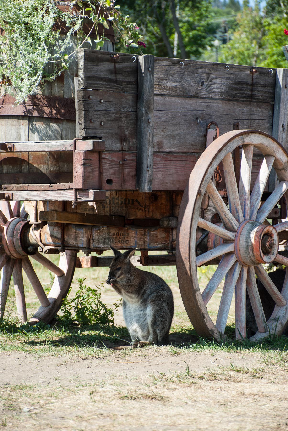 Another hot day in the Okanagan Valley, with always a blue sky around 30 degrees and no clouds, we were visiting a kangaroo farm and later on we’ve been cycling at the Myra Canyon. It looks like kangaroos doesn’t exist only in Australia, our host recommended us to go there which to see kangaroos babies. The small farm didn’t has just kangaroos with a mix of exotic and regular farm animals we spent a little time petting them.