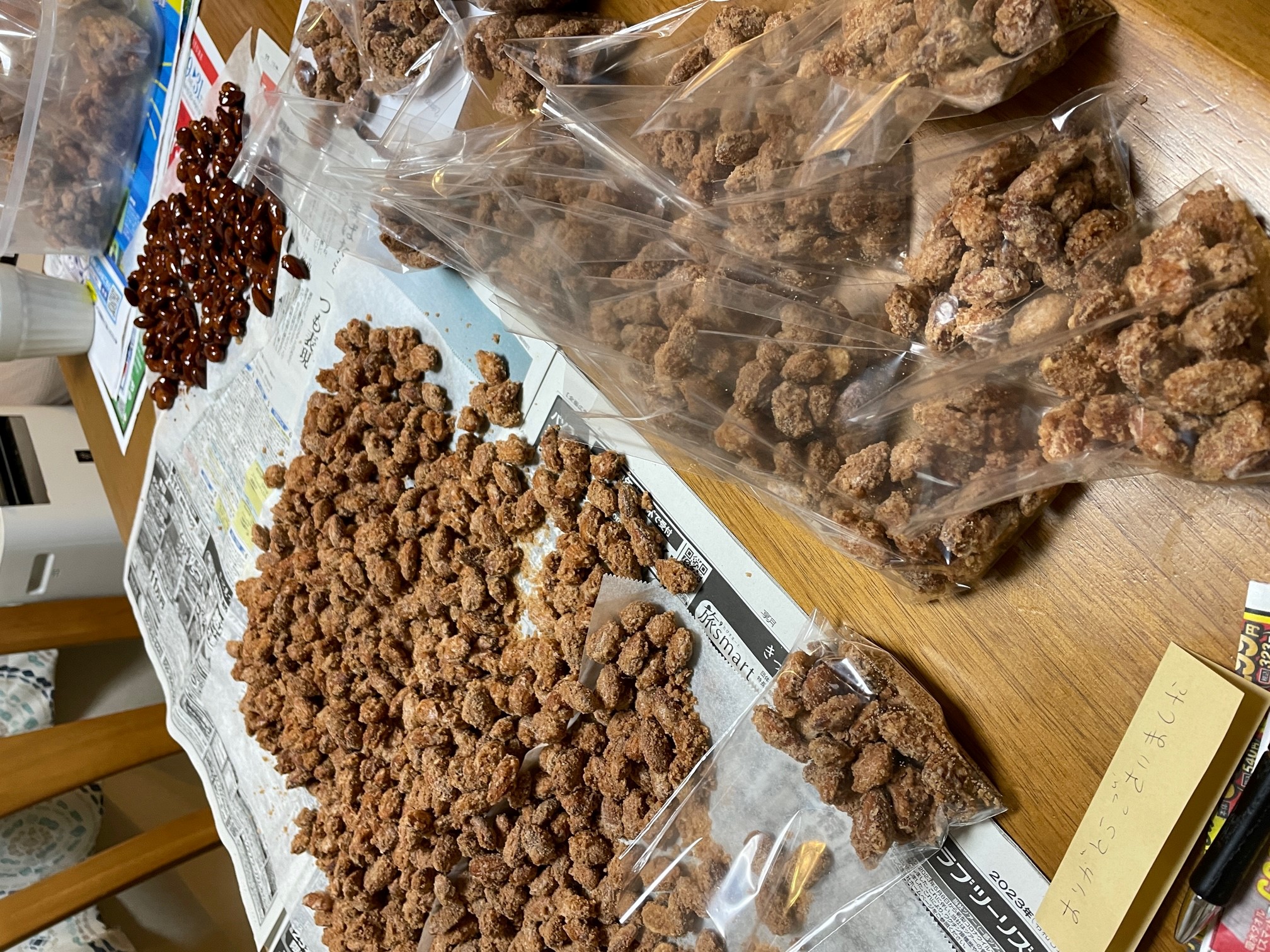 Da wir mehr als genug haben, verschenken wir an Freunde und Familie die berüchtigten gebratene Mandeln nach deutscher Art ;-)