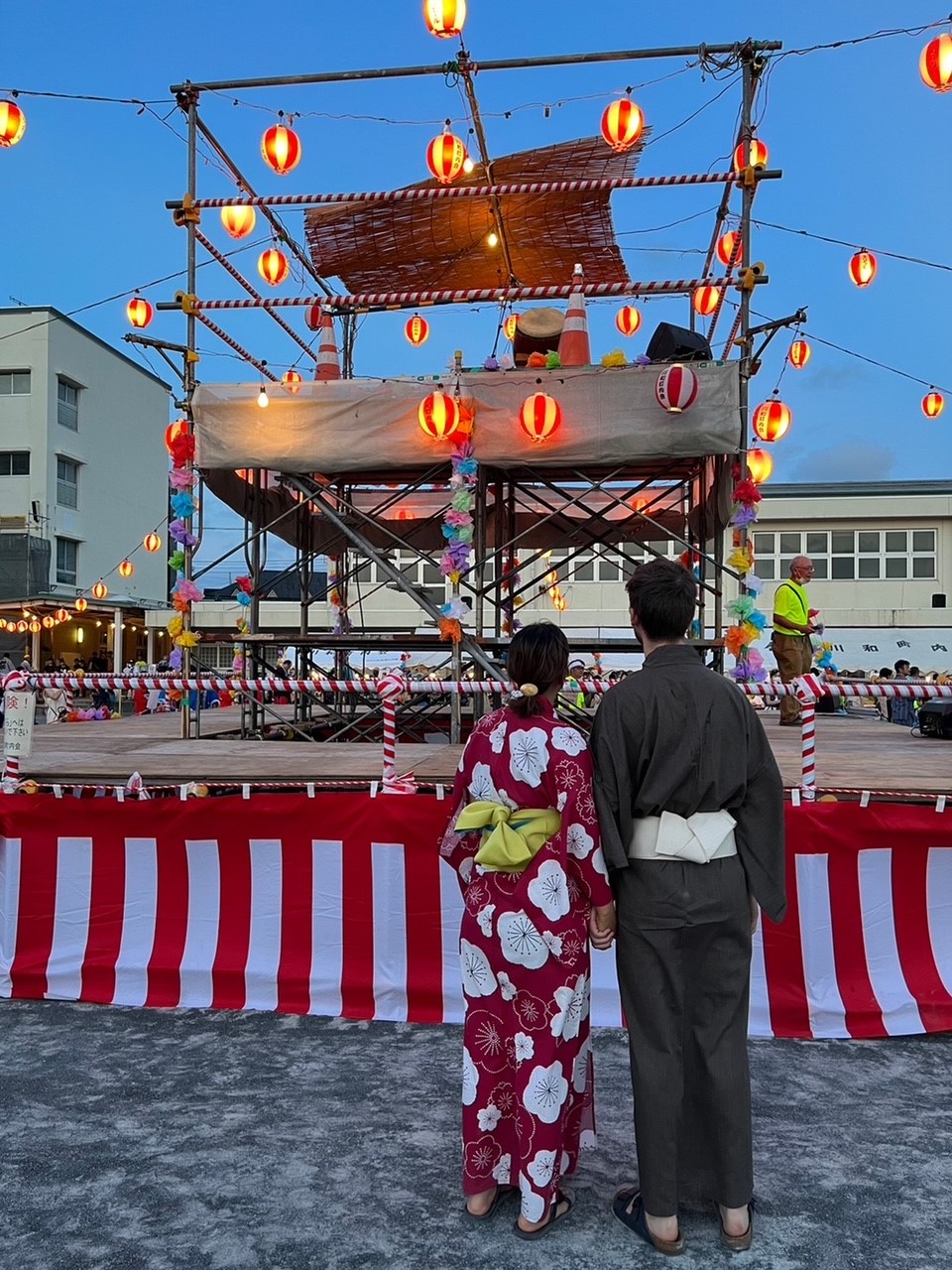 We were wearing a traditional yukata for the occasion, similar in appearance to the kimono, but much lighter and more comfortable for the hot summer in Japan.