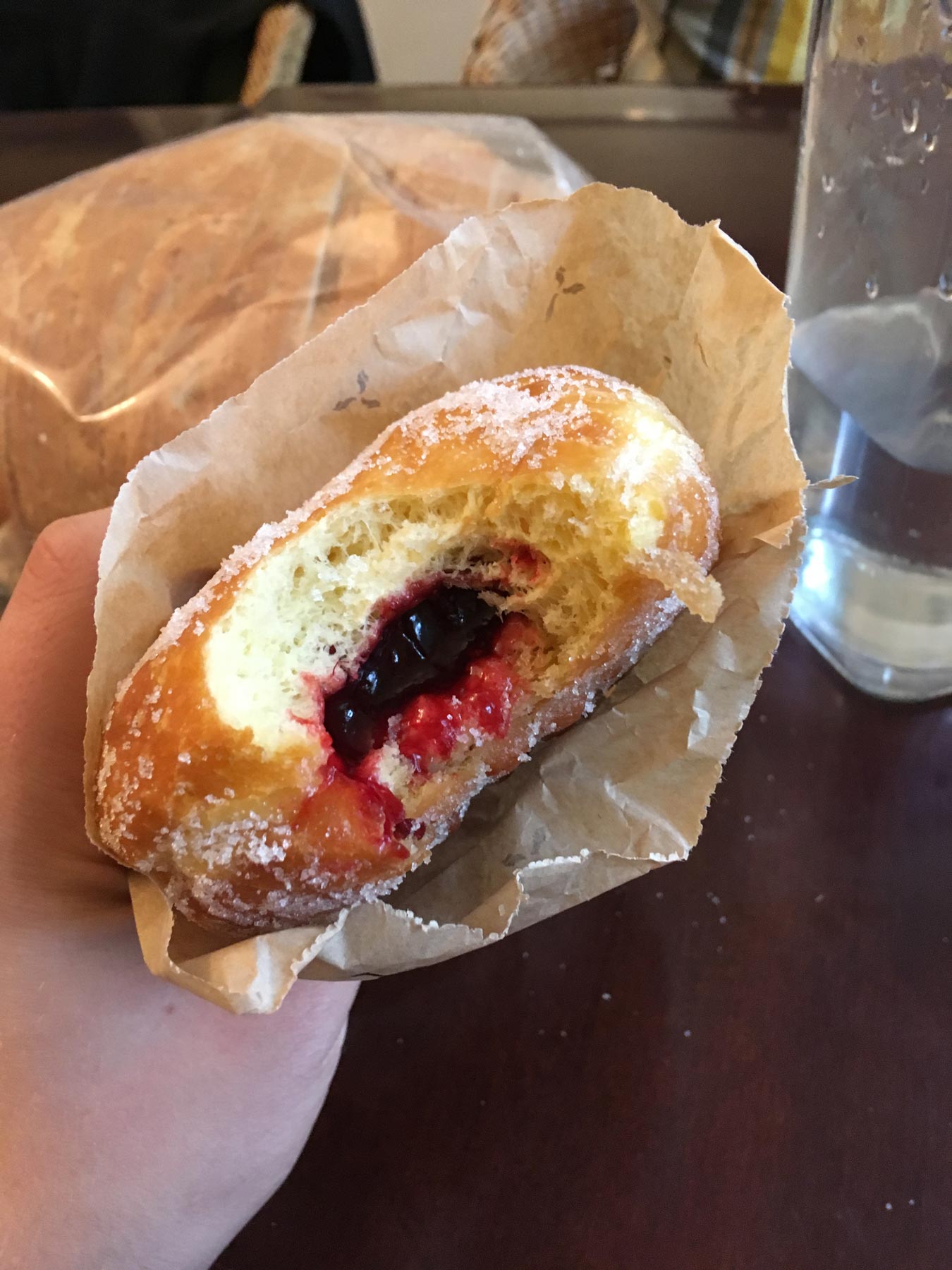 Schmeckt genauso wie vom Bäcker daheim. Breka Bakery & Café ist etwa 20 Minuten zu Fuß von unserem Haus entfernt, ab und an treffen wir uns dort am Wochenende morgens um ein Kaffee oder Tee zu trinken sowie das eine andere Süße wie Berliner, Donuts oder ein Sandwich zu essen. Heute zum Beispiel haben wir uns nur ein Berliner zum mitnehmen geholt.