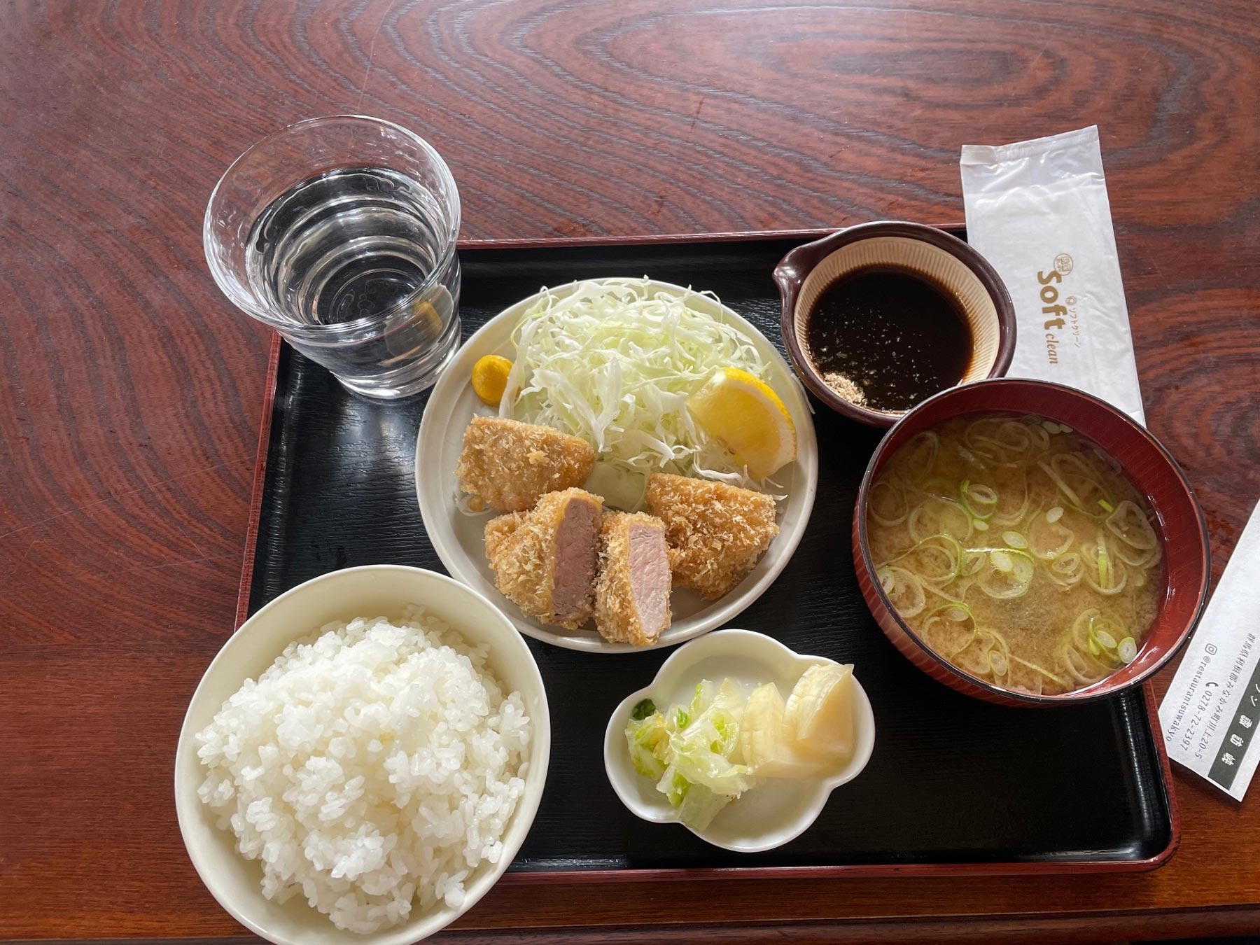 Ich konnte mir zum Schluss sogar was zu Mittag aussuchen, und meine Wahl fiel auf das Tonkatsu, paniertes Schweinefleisch, mit Kohl, Reis, Misosuppe, Sauce und eingelegten Rettich. Das naechste mal steht schon fest, war also nicht mal so schlecht.