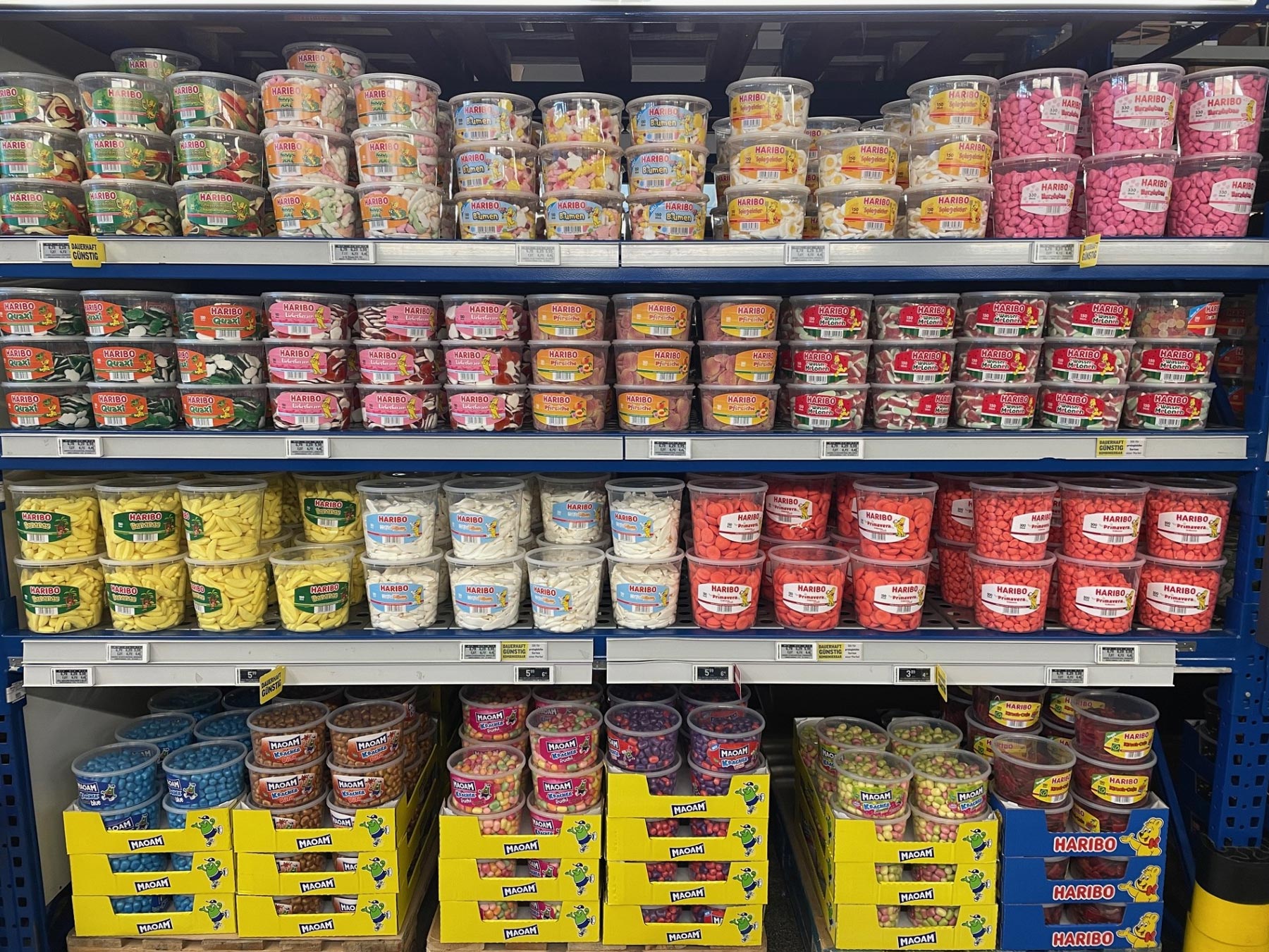 Ganz schoen viel suesses. Ich war mit meiner Schwester heute in der Metro. Wie man es von der Metro kennt, gibt es Lebensmittel in uebergroesse.