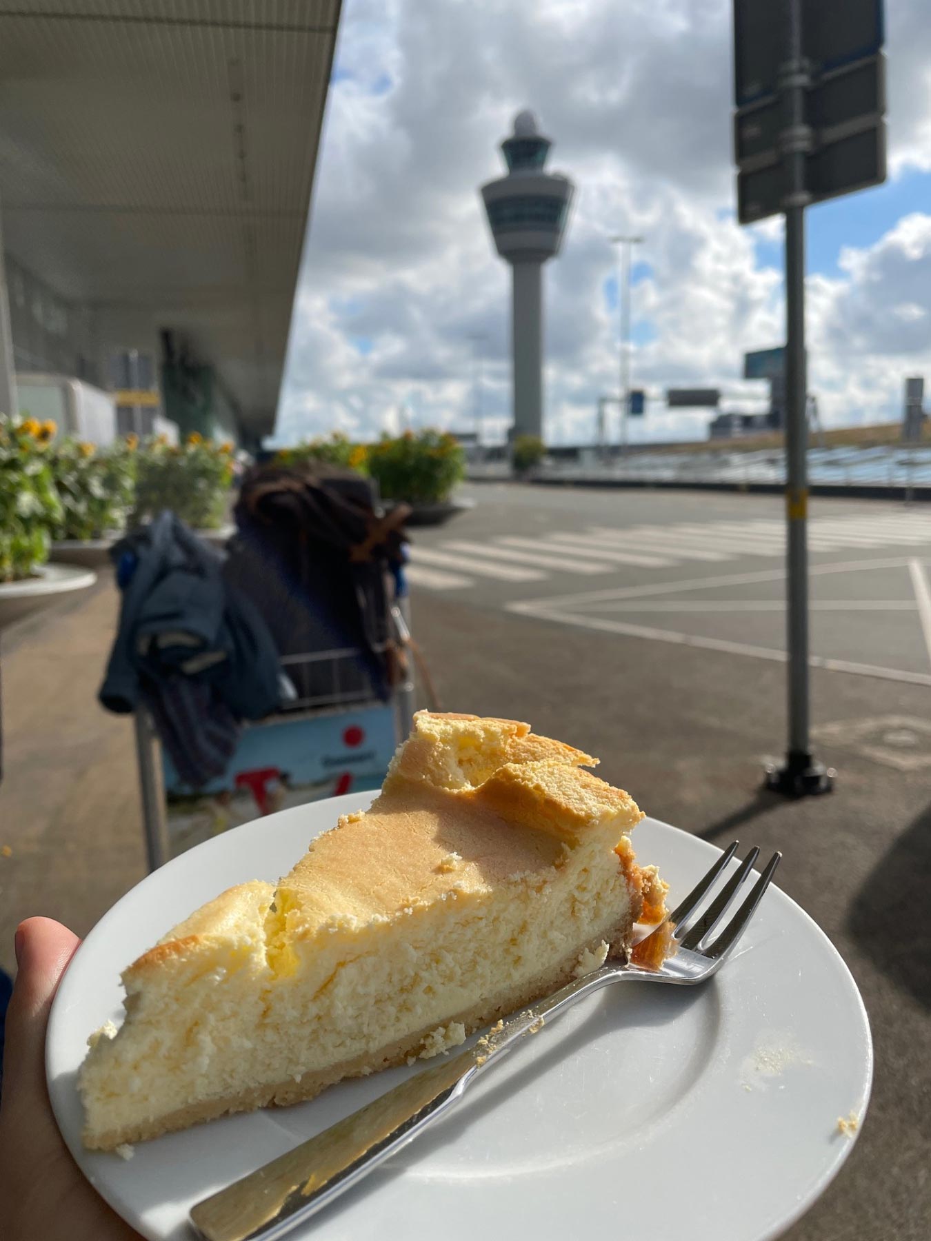 But before heading trough check in and security my family and me had cheesecake we brought all the way. Yummy.