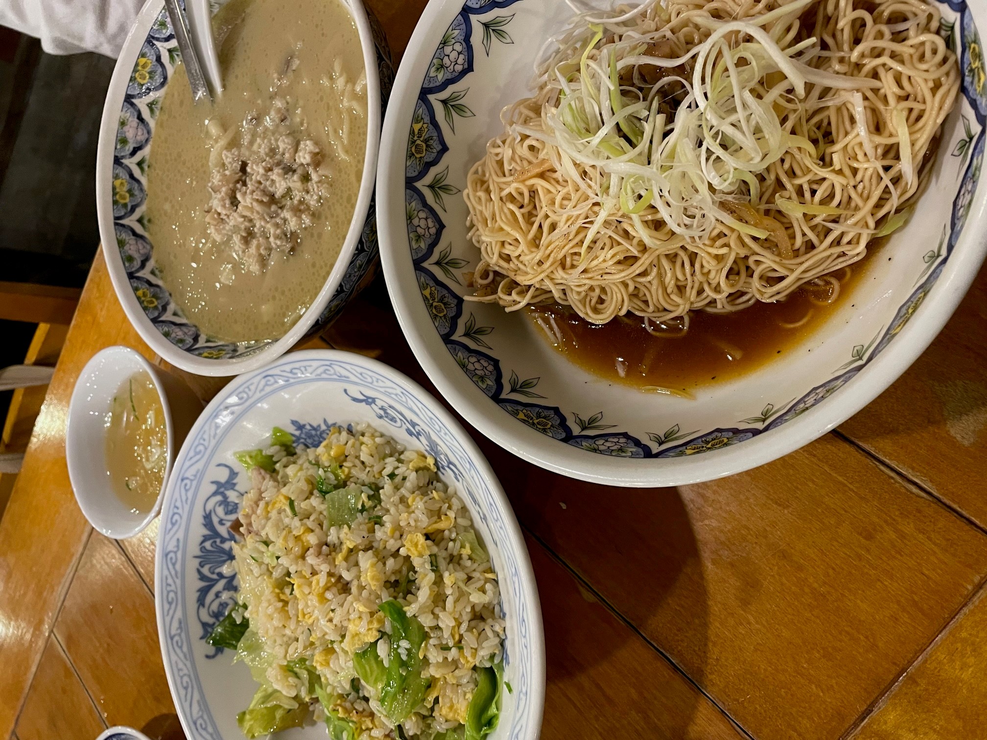 Am Abend gab es dann das erste japanische Essen außer Haus und zwar Schrimp-Nudeltaschen, Ramen, gebratenen Reis und Ramennudeln ohne Suppe.