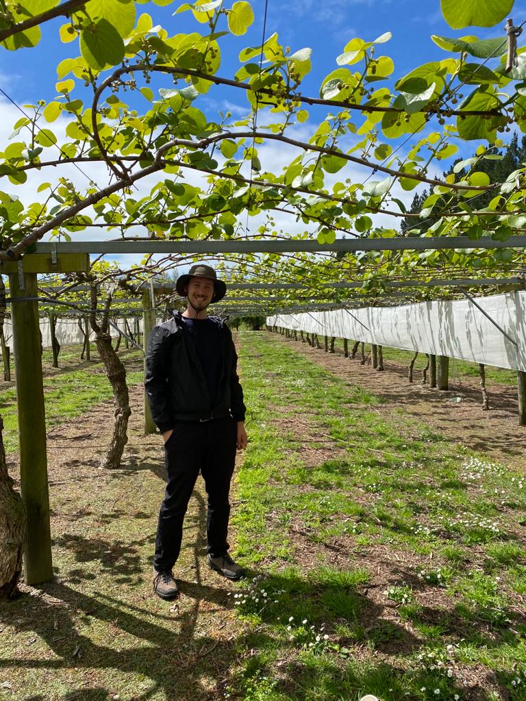 After an initial introduction and training on the kiwi orchard, we were able to get started straight away. It's not difficult at all, the only task is to pluck off some of the kiwi buds, called bud thinning, so that the ones that are supposed to stay on have space and get the full energy.