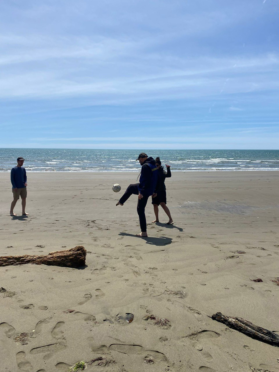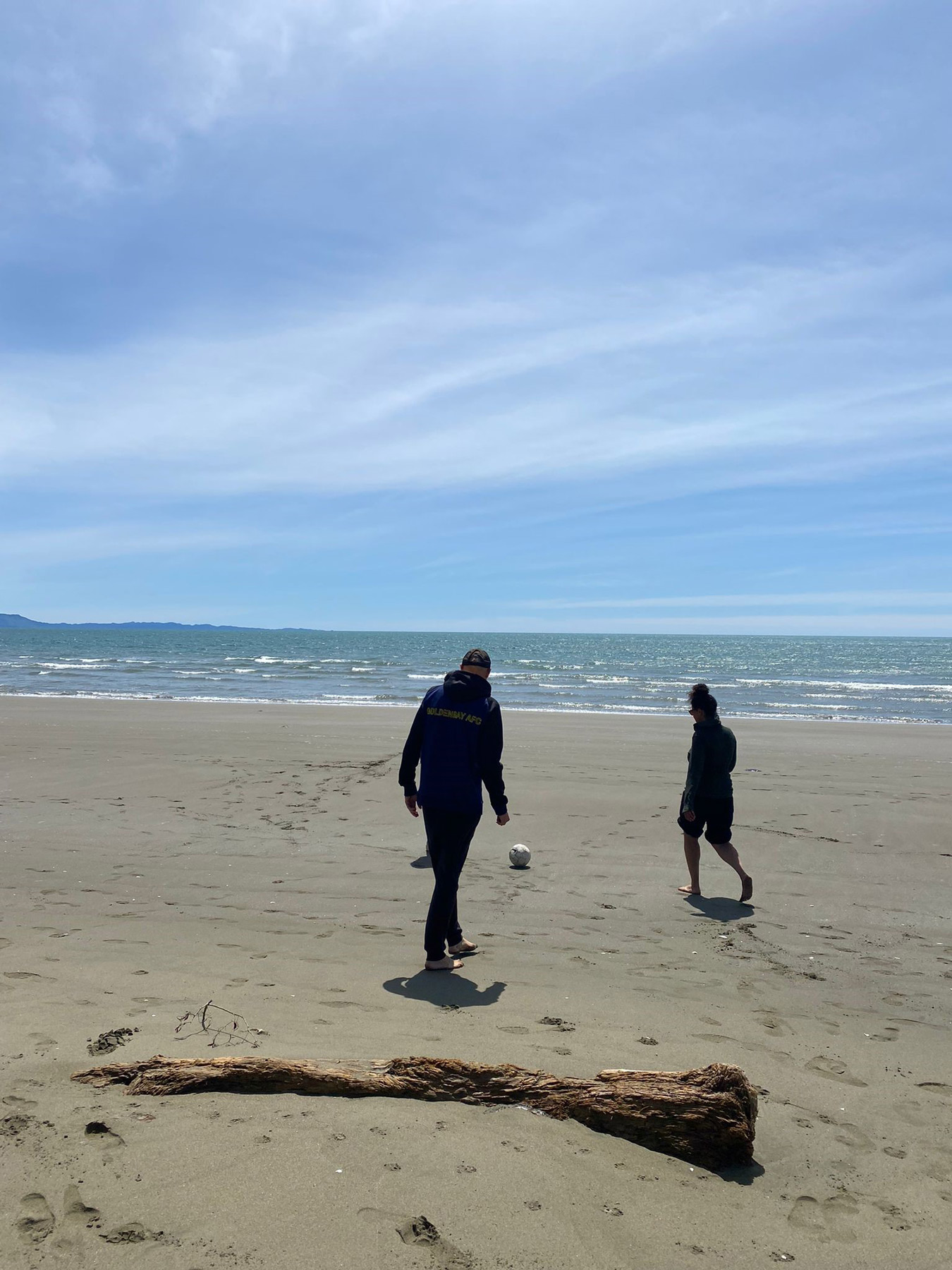 Da wir es nicht weit zum Strand haben, waren wir heute mit einem Fußball am Wasser. Die Sonne ist schon schön warm, nur der Wind macht es noch ungemütlich.