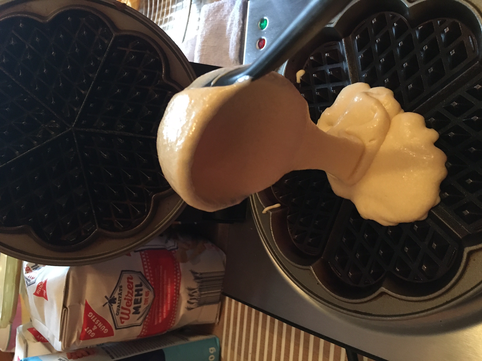Schon in Kanada haette ich Waffeln machen koennen, da wir uns aber nie ein Waffeleisen besorgt hatten, war es jetzt endlich soweit. Dementsprechend lecker, war es dann auch mal wieder welche zu essen!