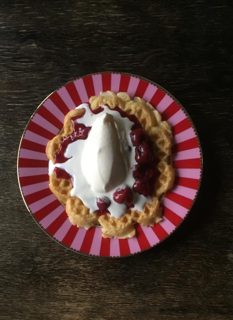 Cause we didn't have a waffle maker in Canada I couldn't make my favourite waffles. Being back home is like living in a kitchen store. My parents for example are having a sandwich maker, juice machine, a deep fryer and the waffle maker. Usually Sunday my mum is baking or is making some goods, and today was my turn making waffles!