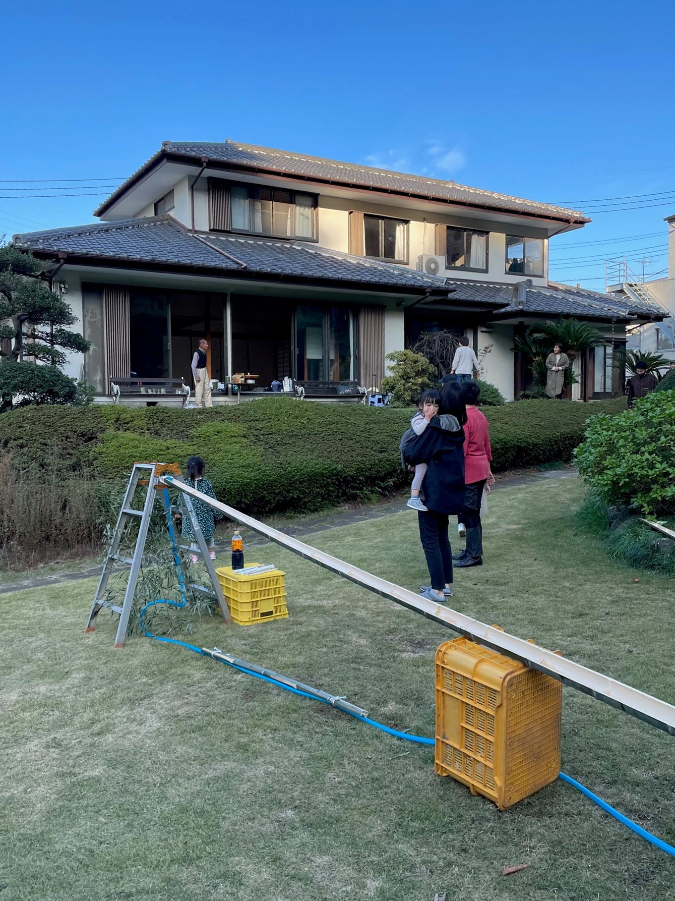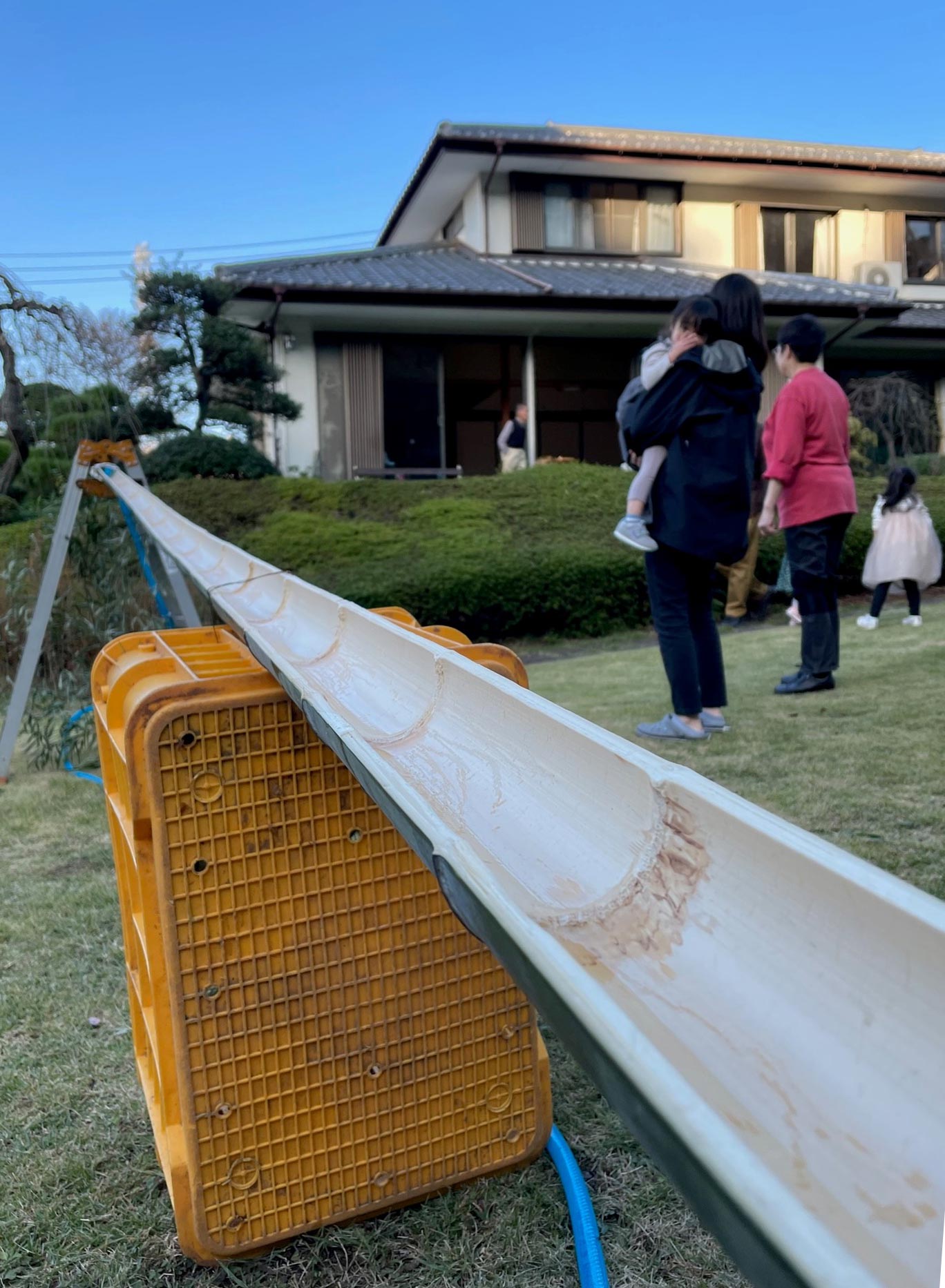 Nagashi somen (流しそうめん) is traditionally served dish, as we did today, in a halved bamboo tree.