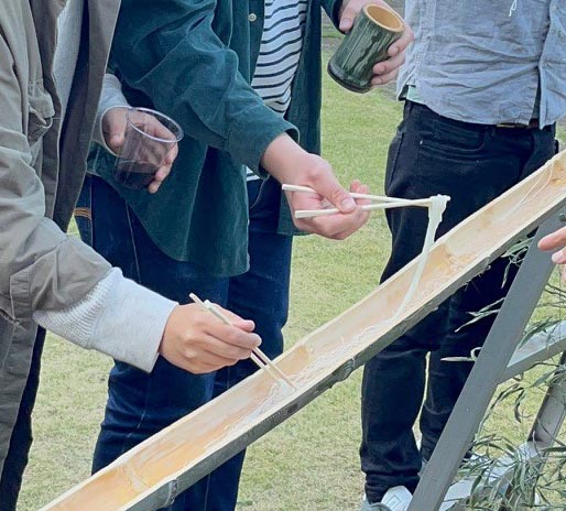 Nagashi somen (流しそうめん) wird traditionell, wie wir es heute gemacht haben, in einem halbierten Bambusbaum serviert.Die Nudeln fließen mit Wasser durch das halbierte Rohr, welche man dann mit seinen Stäbchen auffischen kann. Die Nudeln können so gegessen oder in einer Schale mit Sojasauce und Wasser getunkt werden.