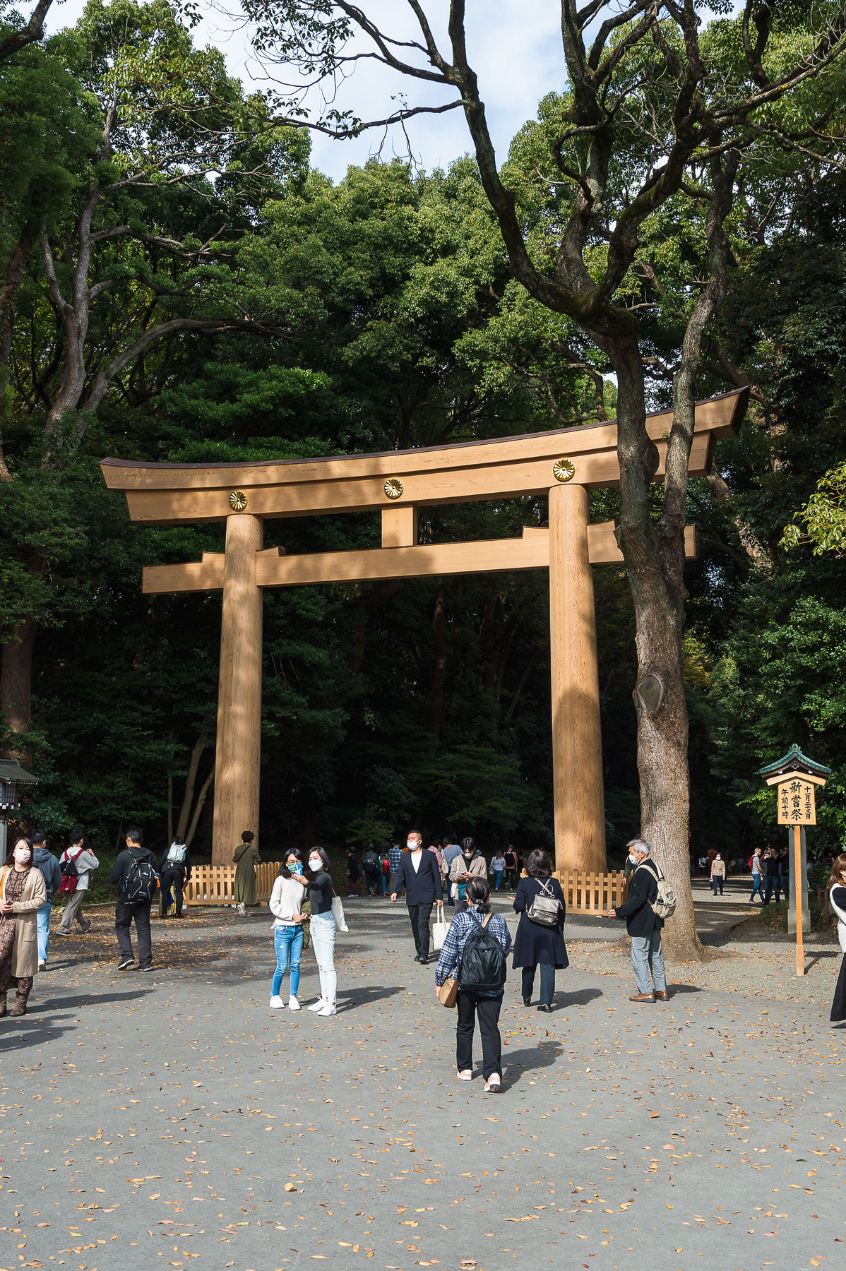Unser Ziel fuer heute war der Meiji-Schrein, mitten in einem grossem Waldstueck im Tokioter Stadtbezirk Shibuya gelegen. Gut besucht und da heute Sonntag ein gut gewaehlter Tag um zu heiraten ist, sahen wir insgesamt vier Hochzeitspaare mit Familie die durch den Schrein passierten.