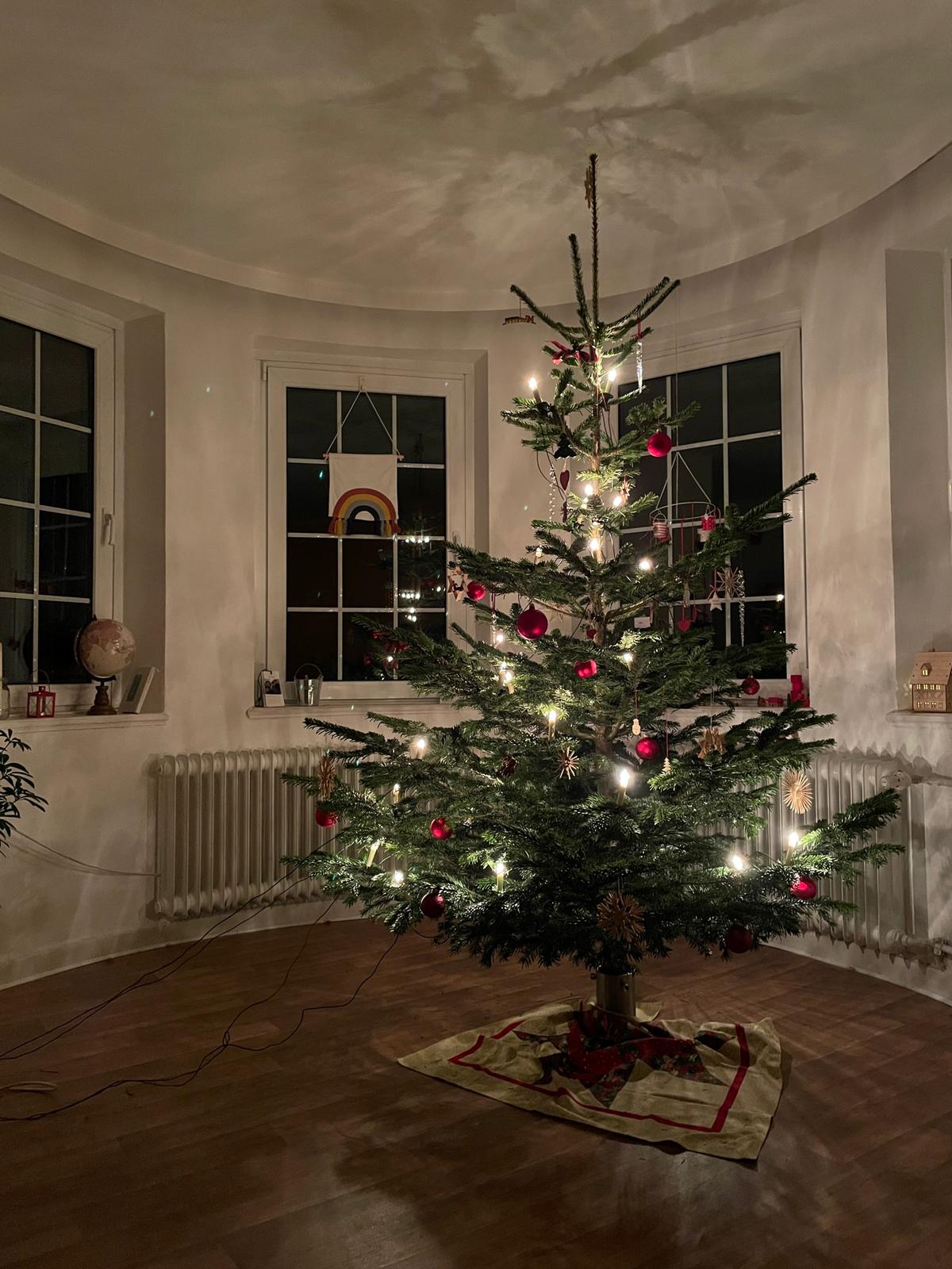 Da steht unser Weihnachtsbaum auch schon! Eigentlich hatten wir noch gar nicht geplant ihn heute zu schmücken, da wir aber die Kiste mit dem Schmuck aus den Weg gestellt hatten, haben wir dann doch angefangen. Zunächst aber nur die Lichterkette, im späteren Abend kam dann der restliche Schmuck an den Baum.