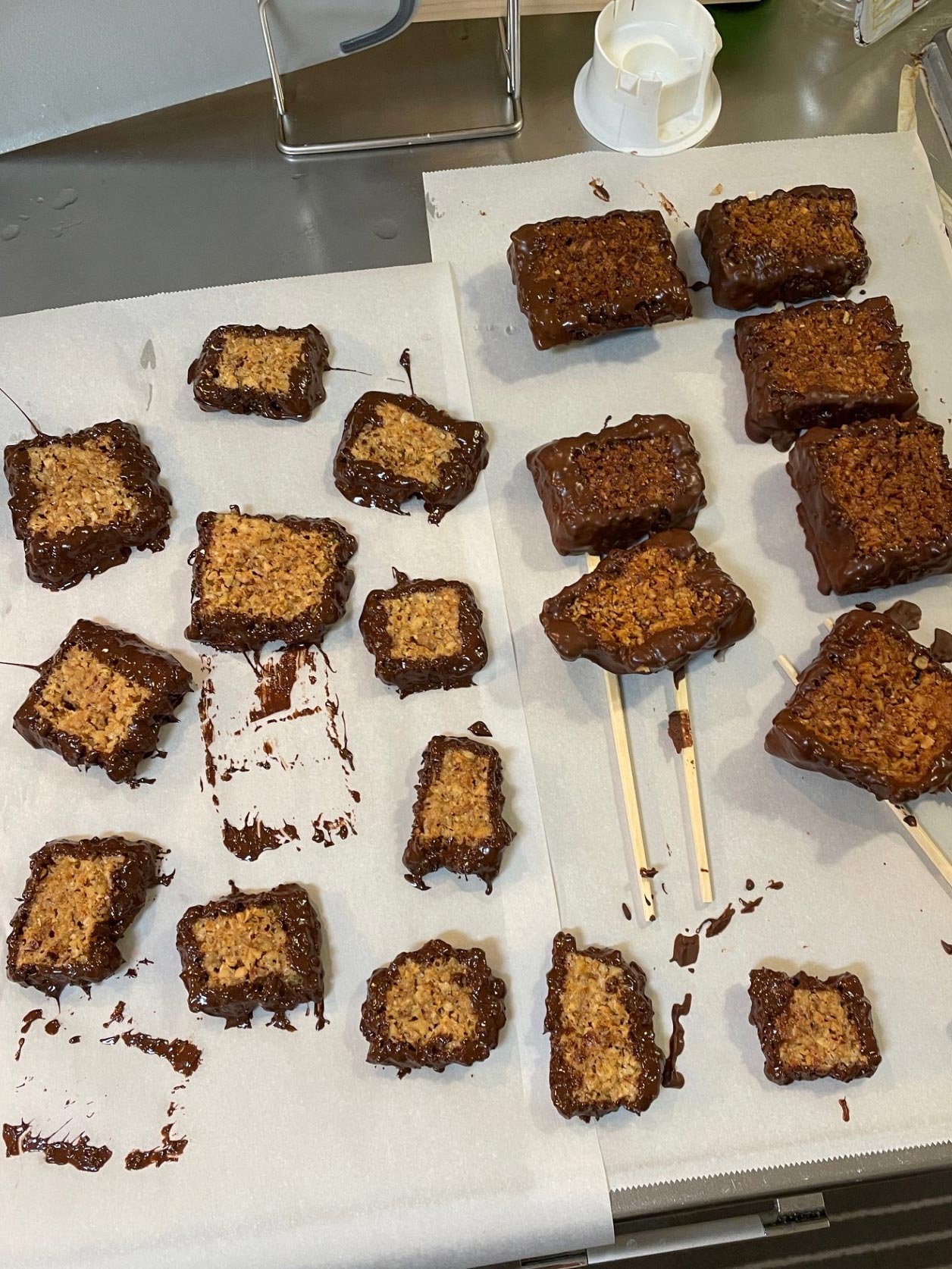 I usually don't bake often, but I was craving for german nut bars and decided to try out the Japanese oven (which is more like a microwave). The taste turned out pretty good, though they ended up a bit flat and crispy. Next time, I’ll need to adjust the timing, amount, and temperature.